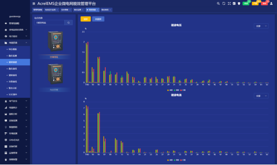 谐波/间谐波、谐波畸变率、电压偏差、电压波动与闪变等电压电流稳态监测,暂升、暂降、短时、容忍度分析电压暂态监测、电压瞬变监测。智能无功补偿装置与智能有源滤波装置控制器接入智能通信管理机,通过电力监控主机显示其运行状态,进行谐波治理。