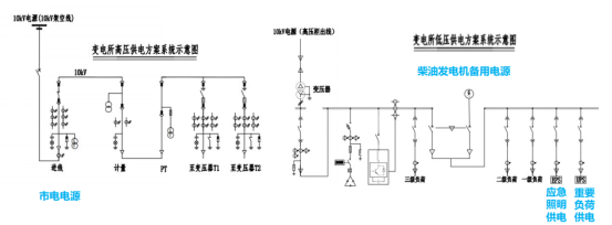 隧道变电所重要负荷一般为应急照明设施、通风及照明控制设施、紧急呼叫设施以及部分消防设备等。隧道都处在比较偏远的地段,采用乡电比较多,由于乡电本身就不稳定,经常面临着停电的风险,一般采用EPS应急电源。如所带负载有设备对电压要求高的可由UPS供电。