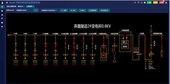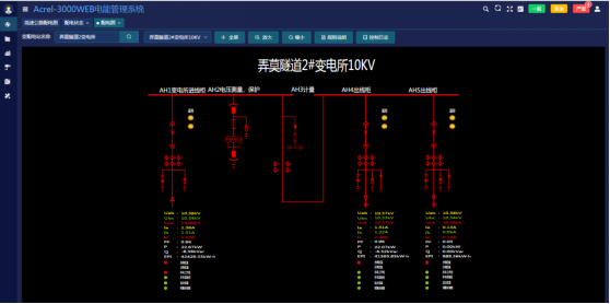 沿途数十几个路段变电所、路段箱变、隧道变电所、服务区变电所、收费站变电所绘制在一张K线图里面,点击每个站跳转相关配电图画面显示,使整条高速公路的配电系统一图掌握。