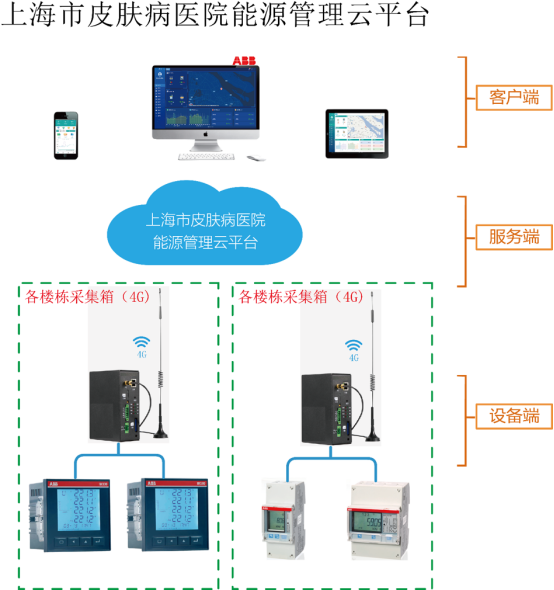 上海市皮肤病医院建于1945年,是一所以皮肤病为主要诊疗特色的公立三级专科医院,是上海市住院医师规范化培养基地和专科医师规范化培训基地。该医院有2台变压器,院方为了方便统计变压器用能情况、负荷情况、各个科室、区域的用能情况以及设备出现用能异常时系统自动派发工单等,针对院方个性化的功能需求,我们通过软、硬件相结合的方法从而实现业主的功能需求。