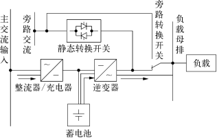 3)静态转换开关。作用是防止正常电流与旁路电流切换时造成瞬间供电中断并产生继电器触点拉弧、