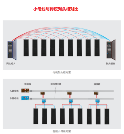 传统的列头柜配电模式在数据中心工程建设和运行维护中存在较多的问题,包括供电线缆、桥架金属消耗量大、施工难度大、占用机房空间、使用寿命短、系统灵活性差、维护检修难度大、影响气流组织等等,而小母线的应用,从某些程度上为用户避免了传统列头柜配电模式的弊端,在新的数据中心建设形势下,有着巨大的优势,展开如下: