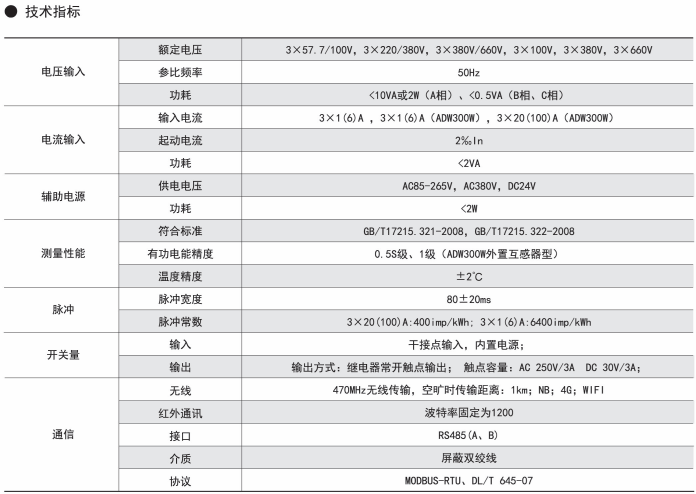 ADW300无线计量仪表主要用于计量低压网络的三相有功电能,具有RS485通讯和470MHz无线通讯功能,方便用户进行用电监测、集抄和管理。可灵活安装于配电箱内,实现对不同区域和不同负荷的分项电能计量,统计和分析。