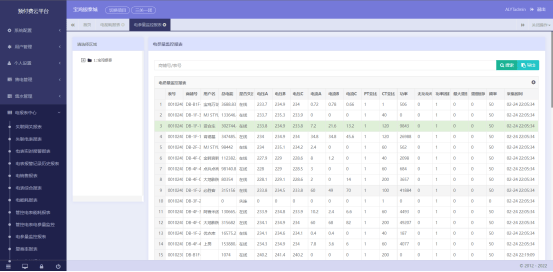 这里展示了所有预付费电表当前实时的状态,比如商铺号、所属业主、剩余金额、电量总数、数据更新时间、当前电价、费用状态、分合闸状态等。