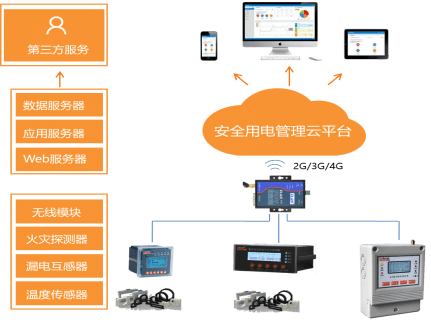 7)通讯功能:具有1路RS485接口,1路2G无线通讯,可以将数据发送到后台监控系统,实现远程监控。监控后台可以是Acrel-6000/B电气火灾监控主机,也可以是Acrel-6000安全云平台,或第三方监控软件或平台。