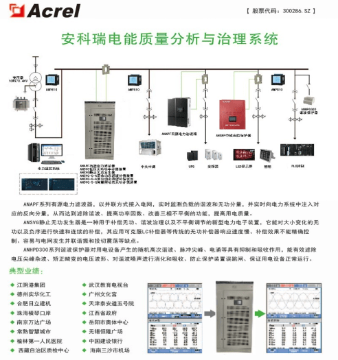 ANAPF有源滤波器治理装置通过外接电流互感器,实时监测负载电流,并通过内部集成芯片计算,提取出 负载电流的谐波成分,然后通过调制波形发送给驱动器件,通过驱动器件产生一个和负载电流大小相等、方向相反的电流注入到电网中补偿谐波电流,实现滤波功能。