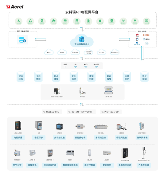 正是有了这些关键技术的保证,才确保了能源物联网的发展。Acrel-EIoT能源物联网云平台是一套基于我司物联网数据中台,建立了上下行数据标准,为互联网用户提供能源物联网数据服务的平台。用户仅需购买我司物联网传感器和互感器等设备,自行安装后无论是物联网仪表直传还是通过网关上传,都可以使用手机扫码即可得到所需的行业数据服务。