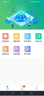电力运维手机支持“监控系统”、“设备档案”、“待办事项”、“巡检记录”、“缺陷记录”、“文档管理”和“用户报告”七大模块,支持一次图、需量、用电量、视频、曲线、温湿度、同比、环比、电能质量、各种事件报警查询,设备档案查询、待办事件处理、巡检记录查询、用户报告、文档管理等。