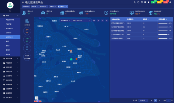 运维中心展示当前用户管理的有关变电所在地图上位置及总量信息。