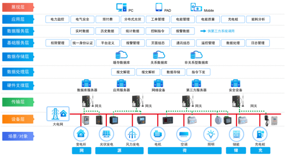 电力监控主要针对10/0.4kV地面或地下变电所,对变电所高压回路配置微机保护装置及多功能仪表进行保护和监控,对0.4kV出线配置多功能计量仪表,用于测控出线回路电气参数和用能情况,可实时监控高低压供配电系统开关柜、变压器微机保护测控装置、发电机控制柜、ATS/STS、UPS,包括遥控、遥信、遥测、遥调、事故报警及记录等。