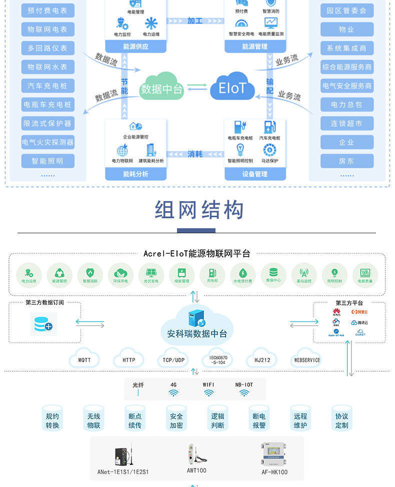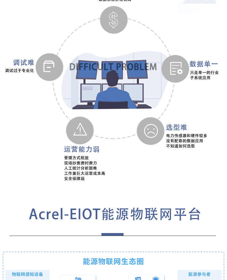 Acrel-EIoT能源物联网云平台是一套基于安科瑞物联网数据中台,建立了上下行数据标准,为互联网用户提供能源物联网数据服务的平台。用户仅需购买安科瑞物联网传感器和互感器等设备,自行安装后无论是物联网仪表直传还是通过网关上传,都可以使用手机扫码即可得到所需的行业数据服务。