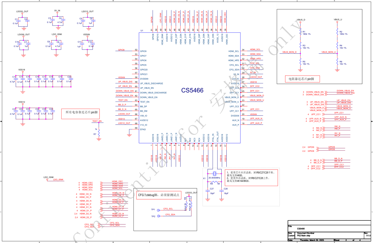 CS5466设计Type-C转HDMI8K30HZ或者TYPEC转HDMI4K144HZ高刷视频转换方案电路原理图如下