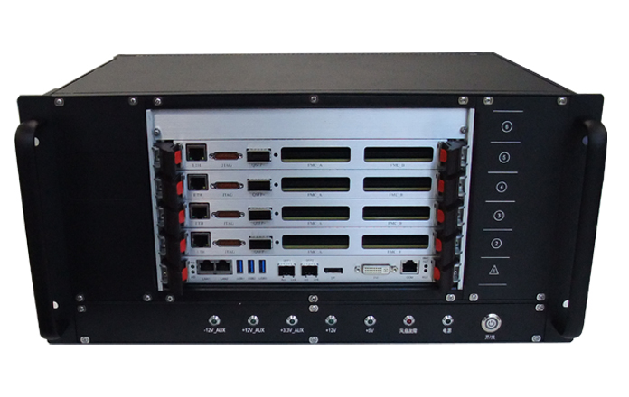 默认支持公司9号板卡-基于C6678+XC7V690T的6U VPX信号处理卡,可以兼容公司2号、3号、440号板卡。 ● P0 作为电源是输入接口,包括外部参考时钟输入,外部复位信号,及I2C总线。 ● P1连接4组GTH x4信号至FPGA。 ● P2连接1组GTH x4信号至FPGA。同时DSP的PCIe信号。 ● P3连接LVDS x16信号至CFPGA。 ● P4连接LVDS x16信号至FPGA,及CFPGA和DSP的千兆以太网,CFPGA的RS422。 ● P5无信号连接 ● P6无信号连接。 3.3.3数据存储槽6 说明 默认支持公司286号板卡-基于6U VPX 的mSATA高性能数据存储板,可以兼容公司441号板卡。 ● P0:单电源供电,系统复位(低电平有效),SM总线(IIC); ● P1:四组x4 SRIO @ 5Gbps/Lane;连接于FPGA-A; ● P2:两组x4 GTX @ 5Gbps/Lane;一个千兆以太网 10/100/1000 Base-T,连接于FPGA-B; ● P3:32对LVDS; ● P4:32对LVDS; ● P5无信号连接 ● P6无信号连接。 四、6U VPX机箱介绍 本5U VPX系统平台,是一种高品质,优性能的基于VPX和Open VPX标准的预研、应用系统平台,可以支持VPX、Open VPX标准等高性能总线。 内部支持6U 6槽 VPX标准背板和1块600W大功率电源,系统采用水平插卡和高性能散热设计,满足用户高性能应用需求,适合桌面和上架应用。 机箱采用高强度重型铝镁合金型材,耐冲击,震动,结构坚固;整机表面光洁、无锈蚀、无划痕,美观大方,操作方便、灵活。 4.1 机箱示意图 机箱外观参考示意图 4.2机箱结构尺寸482.6×221.45×299.75 (mm,宽x高x深)。 4.3机箱散热设计 本机箱采用高性能风冷散热设计。机箱左侧风扇架,1个12V大功率直流风扇, 大风速200CFM,支持无极调速功能,风扇尺寸:120x120x38 (mm)。 4.4机箱功能设计 ● 机箱前面板卡区配备6对导轨,后IO区域配备6对导轨。 ● 调速模块:系统平台带风扇调速模块,支持风扇无极调速功能; ● 面板配置电源输入、风扇故障、直流输出指示灯,实时监测电压和风扇的状态; ● 无极调速控制:系统风扇配置独立手动无极调速旋钮,根据负载、散热情况可选择风速,在保证系统工作稳定同时,可实现功耗和噪音达到好的状态; ● 后面板交流控制开关:系统配置高可靠性钮子开关,并兼有开关防误撞设计,保证了系统操作的稳定性和可靠性。 ● 前面板直流控制开关:系统配置高可靠性按钮开关,防止交流直接上电带来的电流冲击,更好的保证了系统操作的稳定性和可靠性。 ● 后面板具有接地柱,同步时钟输入、1pps、外触发、B码输入,mini BNC接口。 机箱电源 机箱采用进口宽温高性能模块电源,宽电压输入,工作稳定、可靠,低纹波、低燥声,满足用户各种测试、应用环境。电源供电方式采用螺柱接线形式,满足冲击、振动等恶劣环境要求。 电源模块置于机箱的底板槽位,非VPX板卡电源。 【技术指标】 ● 600W风冷模块电源,配置1个40mm直流风扇 ● 输入:85~264VAC/47~63Hz ● 浪涌电流:25A MAX/230VAC ● 工作温度:-20℃~+70℃ ● 存储温度:-40℃~+85℃ ● 冲击性能:3000 Bumps, 10G (16ms) half sine ● 振动性能:1.5G,10~200Hz 【电源输出特性】 输出电压 | 大输出电流