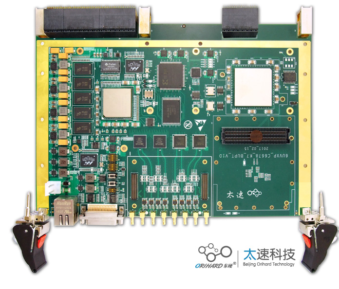 一、板卡概述 本板卡基于6U VPX结构设计无线电信号处理平台。板卡包含1片C6678芯片,1片 FPGA XC7K325T-2FFG900I;4路AD,4路DA;三个双排插针接口,要求承接前端射频电路和ZYNQ视频模块。手机:15216739004陈(微信同号) 邮箱:orihardczk@163.com。具体要求如下: 1 1片TMS320C6678模块, DSP 外挂 DDR3,Nor Flash,出2路千兆网。 2、1片FPGA xc7k325t-2ffg900I, 外接3个双排插针,其中2个包含若干LVDS,1个AD DA中频信号转接。FPGA外接4路AD,4路DA,AD型号AD9652, DA型号AD9122,各2片。4 FPGA配置芯片采用PC28F00AP30,模式设计BPI; 3、 FPGA出8路GTX,若干LVDS到VPX连接器 4 DSP 与FPGA之间通过出SRIO、SPI、Uart、GPIO互联。 5、整板冷板散热,机箱风扇散热;所有器件支持工业级。 二 、板卡原理框图  三 、软件内容 FPGA软件使用ISE14.3,DSP 软件使用CCS5.0以上。 | 程序 | 描述 | FPGA部分程序 | 拨码指示灯软件 | 测试板子工作状态 | AD接口软件 | | DA接口软件 | | DDR3软件 | | ZYNQ接口软件 | | BPI加载测试软件 | 测试加载功能 | DSP部分程序 | DDR3接口软件 | | Flash Boot测试软件 | | I2C接口软件 | | Uart接口软件 | | 千兆网接口软件 | | DSP与FPGA互联 | SRIO接口软件 | | SPI GPIO接口软件 | |