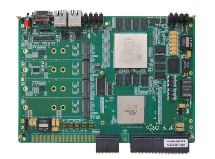 ● FPGA:FPGA型号XCZU19EG-2FFVC1760E,FFVC1760封装,温度等级-E,速度等级-2; ● M.2盘:预留8个M.2接口,支持8个2230、2242大小的BGA SSD M.2盘,及8个2280大小的SSD M.2盘。 ● PCIe Switch:使用PEX8796型号PCIe Switch芯片,使用两路PCIe3.0x16与FPGA的PL端GTH接口相连接,一路PCIe2.0x4与FPGA的PS端GTR相连接,一路PCIe3.0x8与PCIe插座相连接,一路PCIe3.0x16与VPX接口的P2端子相连接,8路PCIe3.0 x4与M.2盘互联; ● 读写性能:硬件设计保证链路传输速率,配合软件实现8通道并发存储状态下设备顺序写入速度不小于8.1GB/s;顺序读取速度不小于10.2GB/s的读写性能; ● MARM:支持MRAM非易失计算缓存空间不小于2MB; ● VPX P1端子:与FPGA的GTYx16接口互联,支持兼容PCIe3.0x16、4路SRIO2.0x4、Aurora x16协议,FPGA的GTYx16接口具备100MHz和125MHz两种高速工作时钟资源; ● VPX P2端子:支持PCIe3.0x16与PCIe Switch互联; ● DDR4:PL端支持2通道64bit DDR4,PS端支持64bit DDR4; ● 支持JTAG调试接口,PS/PL各一路调试串口,PS两路千兆网口;并且对接口进行静电防护; ● 预留测试点,预留FPGA工作状态和下载状态指示灯,预留独立供电接口;