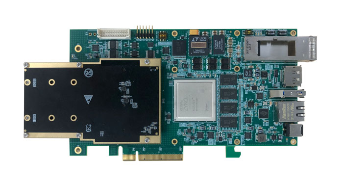 板卡也可以作为一个主控管理板,自带显示,鼠标键盘,硬盘存储。通过GTH扩展不同的外部设备,实现多路AD,DA的信号接入,图像的接入。实现震动信号、电力信号,音频信号,图像信号的分析处理。 四、板卡存储采集应用 板卡可以把PCIe 金手指部分,通过底板连接一个 PCIe固态硬盘卡。构建一套嵌入式的高速存储解决方案。 双盘存储,可以到4GB/s,FMC扩展接入,AD,图像等信号,也可以通过QSFP+ 接入光纤数据。 存储通过ARM,可以支持文件系统,并通过ARM的千兆网络导出。 M.2 硬盘可以拔出,插入到电脑硬件,进行数据文件访问。