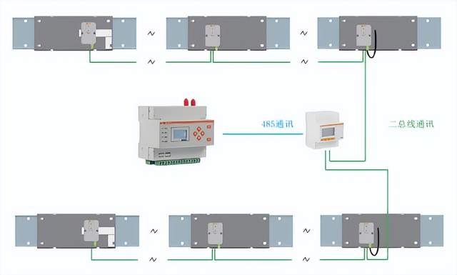 此母线槽红外测温解决方案由红外测温模块,红外采集器,电源模块组成。该系统通过RS485线与后台监控进行通信(如下图),系统设计遵循国际标准Modbus-RTU传输规约,安全性、可靠性和开放性都得到了很大地提高。RS-485作为一种串行通信的接口具有传输距离长、速度较高、电平兼容性好、使用灵活方便、成本低廉和可靠度高等特点,与无线通信方式相比,具有价格低、抗共模干扰能力强等优点。