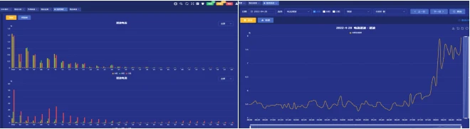 谐波做为国标要求测试项目,用户可查看监测点2~63谐波和0.5~62.5次间谐波的实时频谱图,可根据日期查看各次谐波的历史曲线。谐波较高将会导致从点系统功率因数降低,降低电网使用率,增加连接器热损耗带来安全隐患。