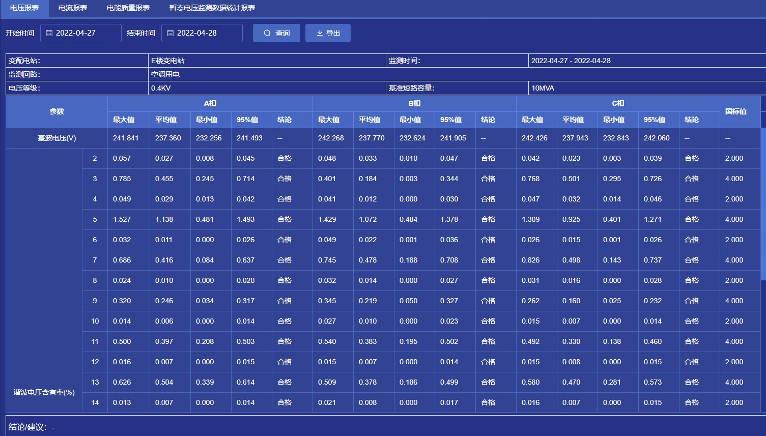 系统可根据监测点的电能质量情况统计分析生成电能质量诊断报告。