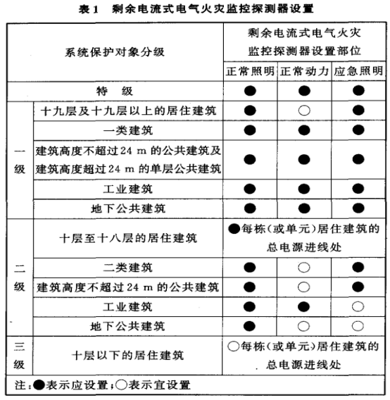 电气火灾监控探测器主要包括剩余电流式和测温式,其性能要求详见《电气火灾监控系统》GB14287-2005)的第2、3部分,笔者仅就其应用进行说明