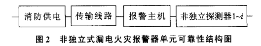 现场供电方式的工作特点是:现场报警控制、远距离传输管理,系统的主要报警和控制功能都可以由现场独立式漏电火灾报警器来完成,采用独立式探测器使现场人员能更直接地得到报警信息。独立式漏电火灾报警器工作可靠性原理图,如图3所示