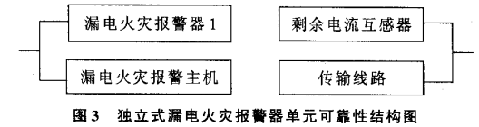 笔者从系统可靠性设计的角度对电气火灾监控系统的功能可靠性进行分析。系统是指由一些基本组件组成的具有某种特定功能的整体。任何系统的可靠性取决于组成它们的组件的可靠性以及这些组件对该系统功能作用的影响。漏电火灾报警系统的可靠性与组成该系统的单元(或组件)的数目、单元(或组件)的可靠性以及单元(或组件)之间的相互功能关系有关。根据两种系统设计功能的不同,得到两种系统单元可靠性结构。
