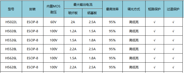 惠海H5526L/H5626L,H5528L/H5628L,H5022L/H5028L高品质,皮实耐抗,耐压最高100V,无论是前装的12V还是后装的12-80V,我们的车灯芯片都能完美适配。