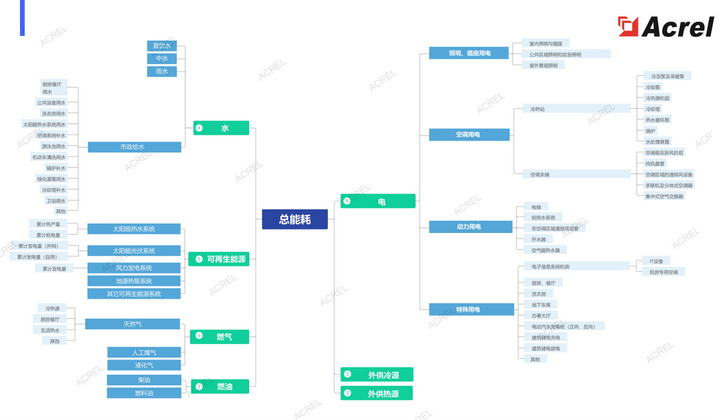 能耗系统严格按照相关标准与导则开发,支持标准中涉及到的电、水、燃 气、冷热量、等各种能源的管理,要求 相关计量装置具备远程通讯功能。