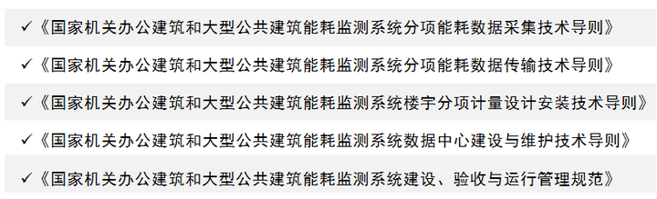 为科学、规范地建设国家机关办公建筑和大型公共建筑能耗监测系统,统一能耗数据的分类、分项方法及编码规则,实现分项能耗数据的实时采集、准确传输、科学处理、有效储存, 制订《国家机关办公建筑和大型公共建筑能耗监测系统分项能 耗数据采集技术导则》 。导则的制定,为确定建筑用能定额、制定建筑用能超定额加价制度提供数据支持,指导国家机关办公建筑和大型公共建筑节能管理和节能改造。