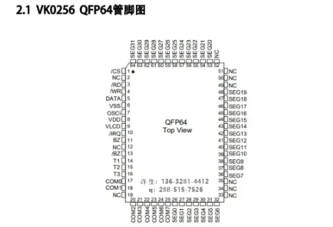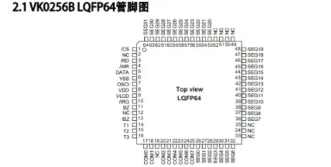 VK0256B 2.4V~5.2V 32seg*8com 偏置电压1/4 LQFP64 省电模式