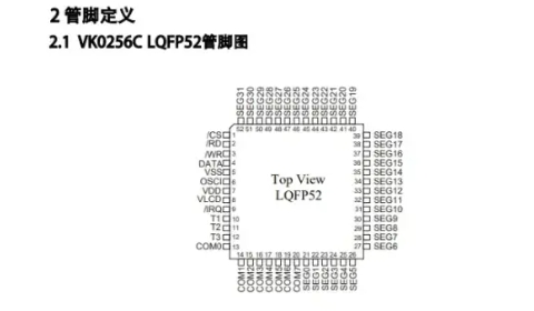 VK0256C 2.4V~5.2V 32seg*8com 偏置电压1/4 LQFP52 省电模式