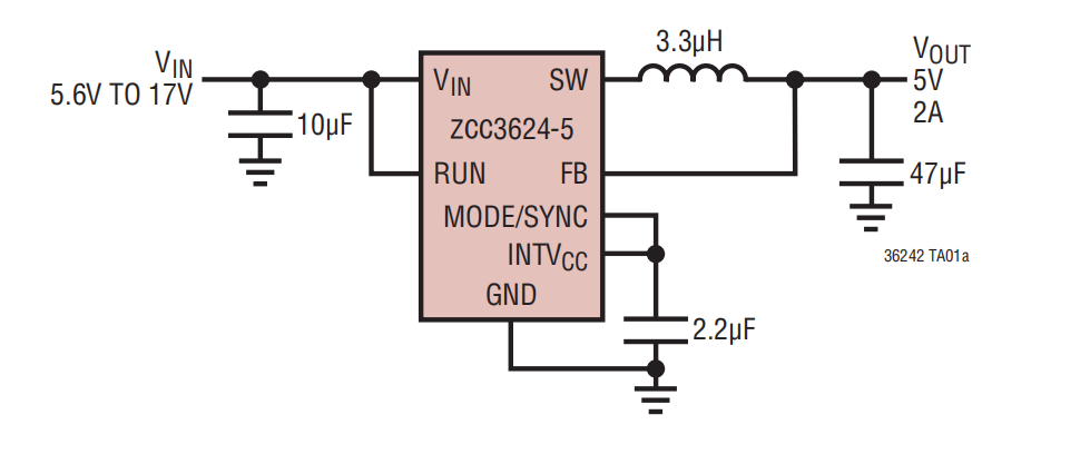 17V输入,峰值电流2A,3.5μA低静态电流,同步降压芯片-ZCC3624替代LTC3624