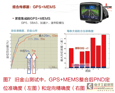 目前,7种关键技术使GPS进入世界各地的手机,本文详述了这些技术的进入过程以及对未来10年有什么影响。 十年前的E911法案启动了消费型GPS第一个成功的里程碑,自此以后,GPS接收器的灵敏度进步了几乎千倍以上,超过九成(五亿支) 以上的手机已搭配GPS 功能并以主机式GPS(Host-based GPS)为标准。联邦传播委员会(FCC)及美国国会在1999年通过了E911法案,此法案规定当手机使用者拨打911紧急电话时,手机可自动提供通话位置信息。原本,辅助定位系统(A-GPS)只用于移动电话网络与GPS时间同步的时间校对,且主要是用在CDMA的电信网络。而全球最大的电信网络GSM和3G并不与GPS时间同步。所以在早期,一般认为非GPS技术(如现在已被淘汰的增强观测时差E-OTD等技术)会在E911法案中胜出的。然而,正如我们现在所知道的,GPS和全球导航卫星系统(GNSS)成了手机定位系统的大赢家。E911法案是GPS在美国发展的主要动力,并且间接促进了全球GPS的发展。这要归功于以下我所要谈论的七项关键技术,它们使GPS技术在过去多年来逐渐成熟。 关键技术一:辅助定位系统(A-GPS) 关于A-GPS有三件值得记住的事:“更快、更长、更高”。透过奥林匹克运动会的名言“更快、更强、更高”,你就可以记得住了。 ![]() A-GPS最显著的特征,是它使用卫星轨道资料传送替代了原有基站传送相同(或等量)的轨道数据,所以A-GPS接收速度更快。在过去,接收器必须在二维代码/频率空间中,搜索每一个GPS卫星信号。而辅助数据缩减了搜索范围,让装置可以用更长的时间来做信号整合,换句话说,就是敏感度更高了 (见图1)。就是我们说的更长,更高。 现在,我们更进一步来看看代码/频率搜索,并介绍精确校时、粗略校时以及大规模平行关联器等概念。任何辅助数据都可以减少频率搜索次数,频率搜索的概念就是如同你转动车上的收音机旋钮,寻找电台位置。只不过由于卫星移动,会产生不同的GPS频率,也就是多普勒效应。如果你可以预先知道卫星是如何设置的,就可以缩小频率搜寻的范围。 代码延迟(code-delay)就更加敏锐了。C/A 代码的重复周期是1ms,所以如果可以在获得卫星信号之前,就知道比1ms更精确的GPS时间,便可以缩小代码延迟搜索区域,这就是我们所说的“精确校时”。 CDMA通信网络是和GPS的时间同步,而最普遍的通信网络(GSM及目前的3G)则不然。后者与GPS时间有±2秒的误差,我们称之为粗略校时。在最初,只有精确校时的网络可以应用A-GPS,但后来局势改观是因为我们有了关键技术二、关键技术三,那就是大量平行关联器和高灵敏度。 关键技术二、三:大量平行关联器和高敏感度 传统的GPS中,每个频道只有两到三个关联器。他们会搜索代码延迟空间直到可搜索到信号,然后用一组关联器追踪峰值的前端,和用另一组追踪峰值的后端,所以他们被称为“前后关联器”。 大量平行关联器是指,有足够数量的关联器同时在多个频道中,对所有的C/A代码延迟进行搜索。就硬件而言,这意味着有上万个关联器在运作。大量平行关联器的好处是,所有的代码延迟搜索都是平行运作,因此接收器可以用更长的时间来整合信号,即使没有精确对时也无所谓。所以现在接收器可以更快、更长、更高,也就是更高的灵敏度,这不限于我们在何种电信网络中执行A-GPS。在最初,我们认为室内GPS定位会受限于高灵敏度,但发觉使用体积更小、更便宜天线的实际成果却也不差。虽然小而便宜的天线会降低性能表现(我们稍后也会提到),但是它们已被配备在所有的智能型手机上,且被手机厂接受去执行有关A-GPS的功能。 ![]() 关键技术四:粗略时间导航 我们已经了解,A-GPS辅助不再受限于根据解码轨道数据(所以可以更快),并可以透过大量平行关联器使用粗略对时(所以可以更长的时间做信号整合及提高灵敏度)。然而,要测量精确初估的距离(pseudorange),并计算行进时间,还是需要花时间对卫星所传送的星期时间(Time of Week, TOW)译码,译码后来取得位置进一步可执行导航。粗略校时导航就是要解决一些卫星的TOW问题,而不是直接解码。其关键的技术是依靠在标准导航中的方程式中加入额外状态资料;并于著名的视线矩阵(line-of-sight matrix)中加入相对应的栏位来解决TOW问题。 这个技术的成果就是,你定位所需要的时间,会比解读卫星的星期时间(TOW)(例如一秒、两秒或三秒)还要更快;或是在卫星信号微弱状态下无法解读卫星的星期时间(TOW)时,仍然可以进行实际上的定位。因为你可以有更快的首次定位时间 (FF),无需频繁唤醒接收器来维持热启动状态,因此可延长电池寿命。 关键技术五:时间短TOW 另一个和粗略时间导航技术相提并论的是时间短的卫星TOW解码,也就是降低解读卫星的TOW数据的门坎标准。在1999年,卫星接收的信号强度可让接收器解读卫星的TOW最低标准可达到-142dBm。这是因为当我们在整合信号以20ms为间隔时,可以侦测到-142dBm信号数据位中强度。然而,解读卫星的TOW的技术不断演进,现在最低可接受强度已经降低到-152dBm。 关键技术六、七:主机式全球定位系统(Host-based GPS),RF-CMOS 从传统的系统单芯片(SoC)架构出发,我们就可以清楚地认识主机式架构(Host-based)。SoC GPS通常是单一封装,但封装中包含了三个独立的组件,有三个硅芯片被包在一起:基带(baseband)模块,包含中央处理器 (CPU);分开的无线调频器(RF)以及一个闪存。如果要降低成本,不使用闪存情况下,唯一