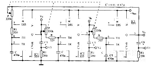 用双单稳态触发器CC4528构成的占空比和频率可调的多谐振荡器